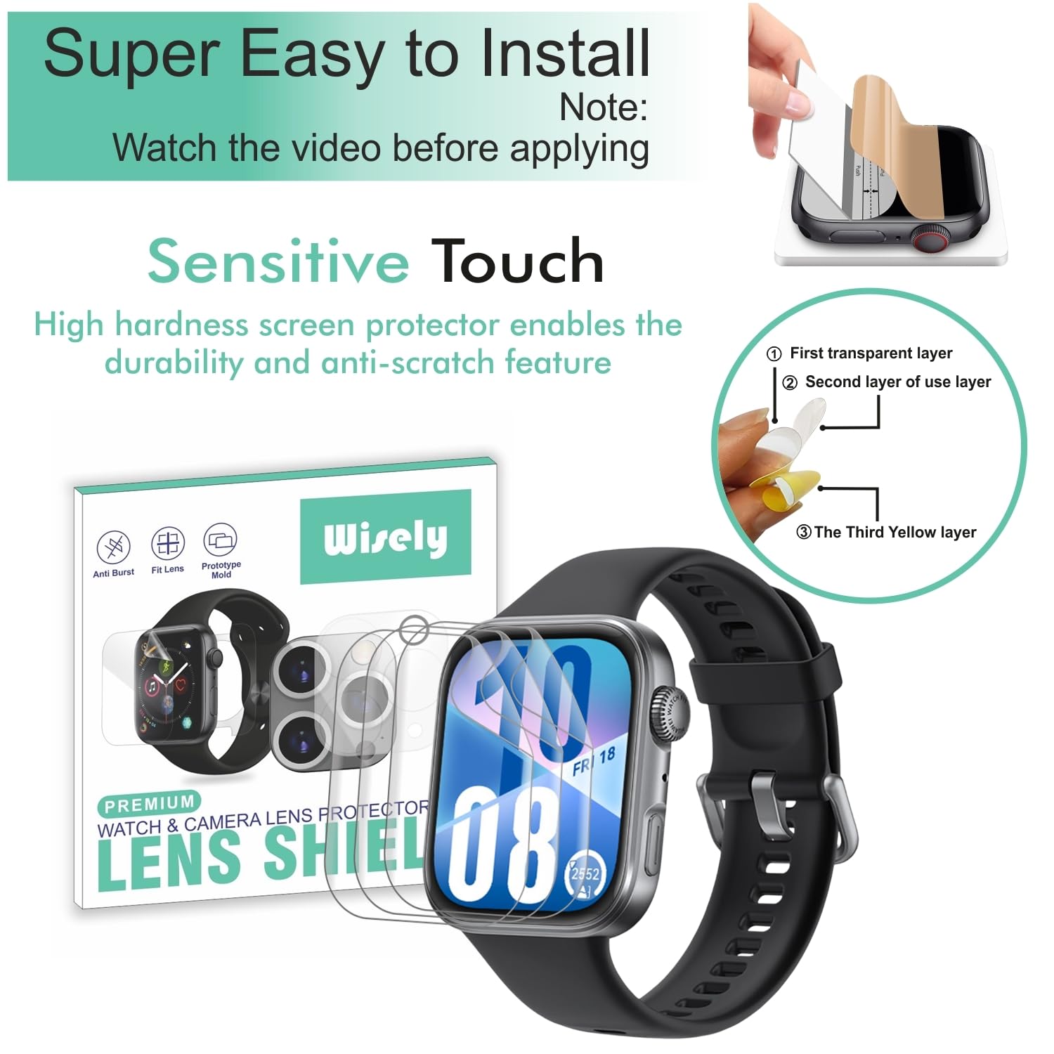 Wisely |Pack of 3pc| Screen Guard Protector For Huawei Watch Fit 4 1.82″ Anti Shock, Anti-Scratch, HD Clear, Full Cover