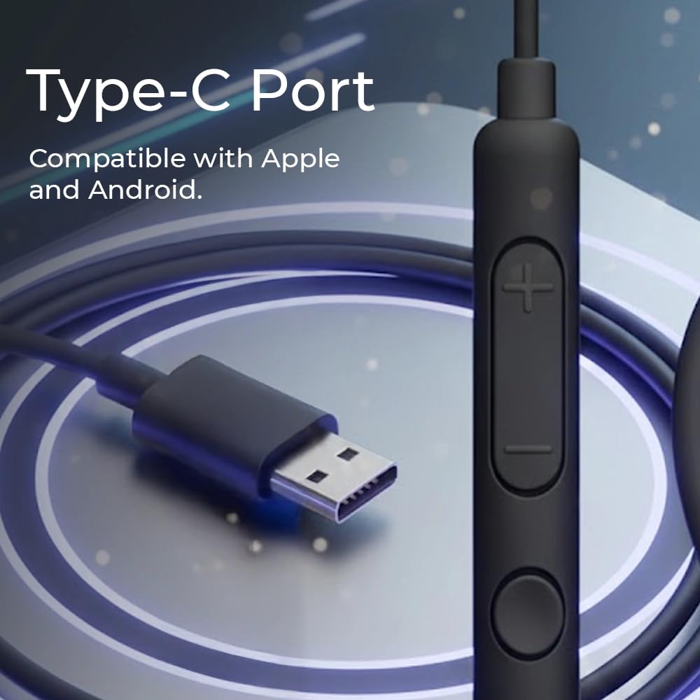 TYPE-C CONNECTIVITY: Equipped with Type-C connector for universal compatibility with Android and Apple devices, ensuring reliable wired connection without battery concerns